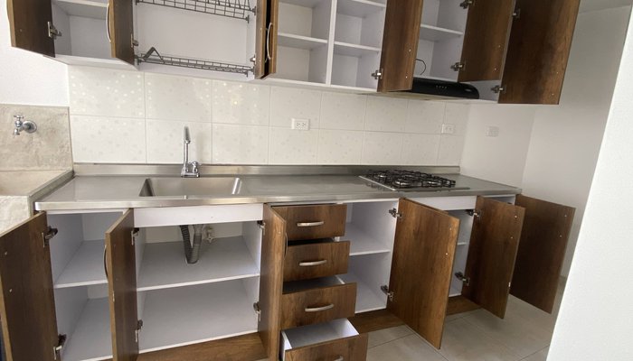 Apartamento moderno, ubicado en sector céntrico de Copacabana, a 2 cuadras del parque principal. Cercano a supermercados, ferreterías, transporte público y comercio en general.